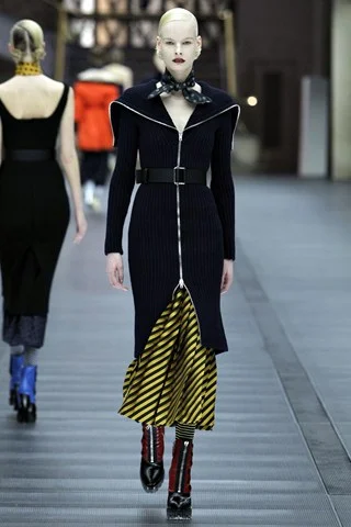 Το μήκος της φούστας ήταν πιο μακρύ από το μήκος του παλτό και τα φερμουάρ ήταν κατά μήκος όλου του σώματος, από τον λαιμό μέχρι τον αστράγαλο, άλλωστε είναι κάτι που το είδαμε καθ’όλη την διάρκεια του show. Εξίσου όμορφες ήταν και οι αποχρώσεις του ρόζ, του κόκκινου και του κίτρινου- ήταν όμως και λειτουργικές και οι navy και μαύρες αποχρώσεις.
