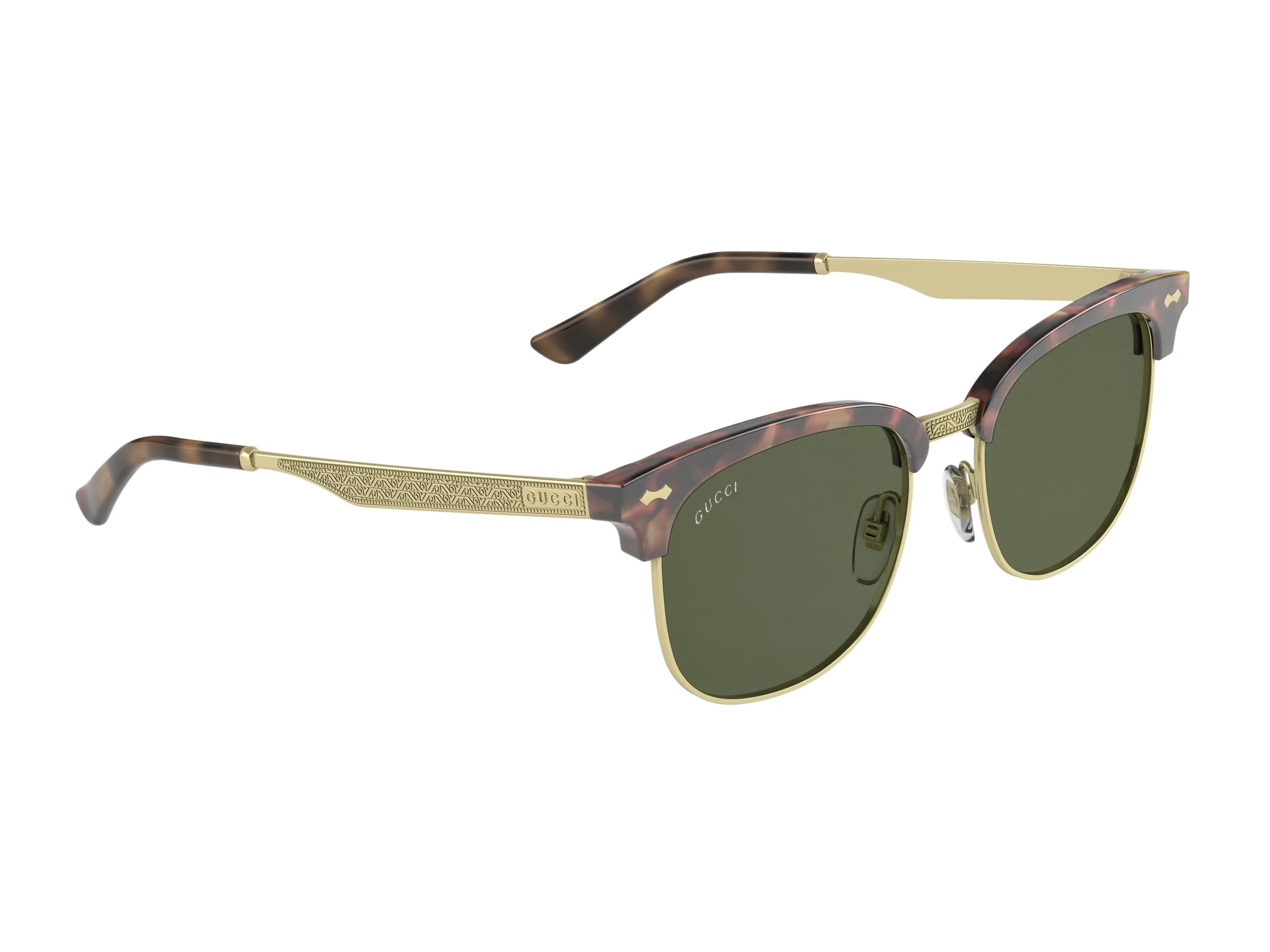Τα ανδρικά γυαλιά ηλίου GG1130/S και οράσεως GG1136 αποπνέουν μια αίσθηση διανόησης με την ελαφρώς τετραγωνισμένη φόρμα τους από Optyl. Οι ποπ λεπτομέρειες χαρίζουν έναν σύγχρονο χαρακτήρα: οι μεταλλικοί βραχίονες διαθέτουν το λακαρισμένο εμβληματικό μοτίβο του λογότυπου του οίκου, σε μια νέα φίνα εκδοχή του. Η χρωματική παλέτα περιλαμβάνει διαφανείς αποχρώσεις σε φυσικούς τόνους που ταιριάζουν με τα μαύρα άκρα των βραχιόνων: μαύρο/ρουτένιουμ, ματ μαύρο/γυαλιστερό μαύρο, ανοικτή ταρταρούγα/χρυσό, γκρι/ανοικτό χρυσό, καφέ/ασημί.