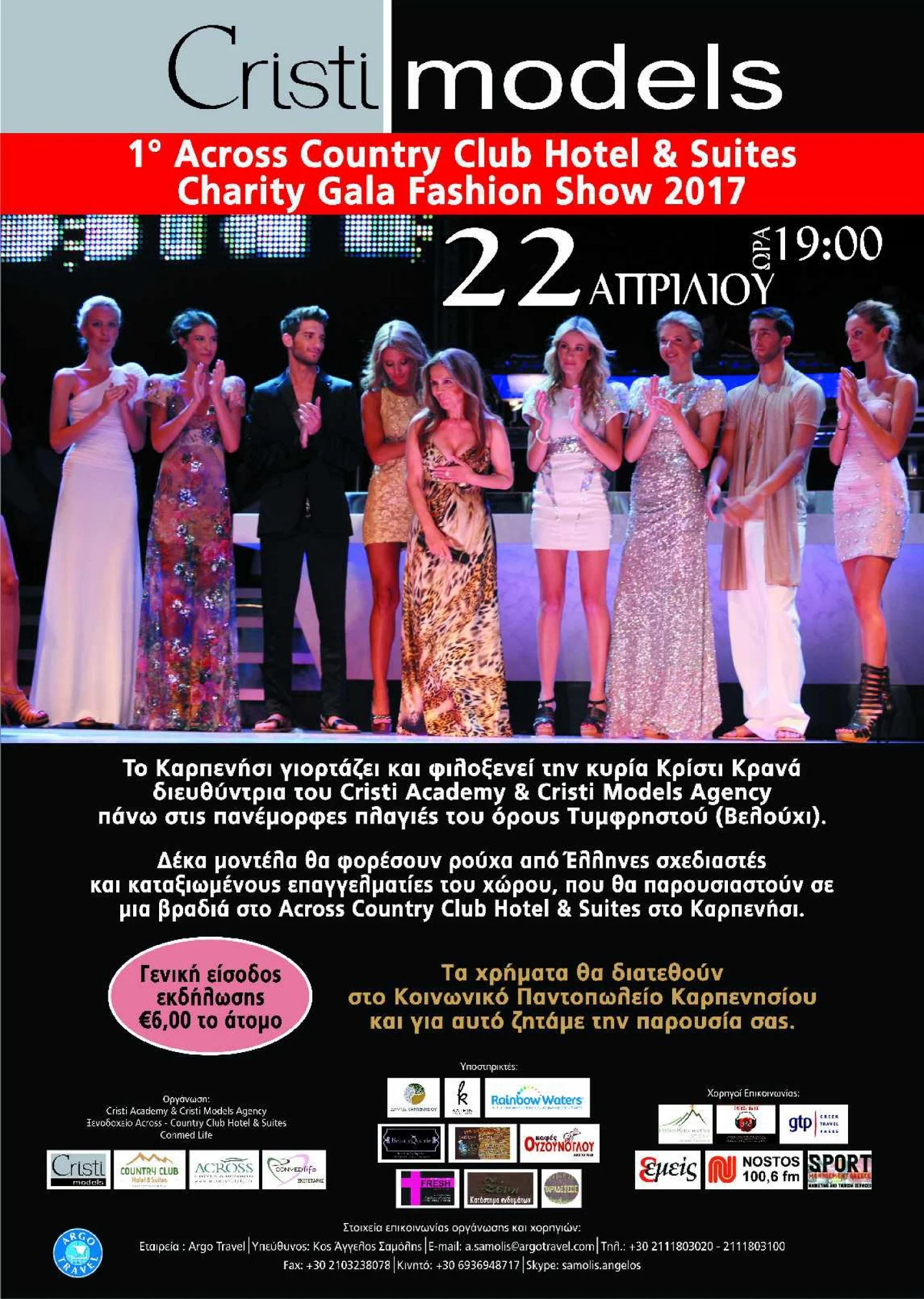 To Καρπενήσι γιορτάζει και φιλοξενεί την κυρία Κρίστι Κρανά διευθύντρια του Cristi Academy και Cristi Models Agency σε μια βραδιά σταθμό για την περιοχή. Δέκα μοντέλα από την γνωστή σχολή Cristi Models Agency, θα φορέσουν ρούχα από Έλληνες σχεδιαστές και επαγγελματίες του χώρου, που θα παρουσιαστούν σε μια βραδιά κοινωνικής ευθύνης στο υπερπολυτελές Across Country Club Hotel & Suites στις 22 Απρίλιου 2017 και ώρα 19:00 στο Καρπενήσι.
